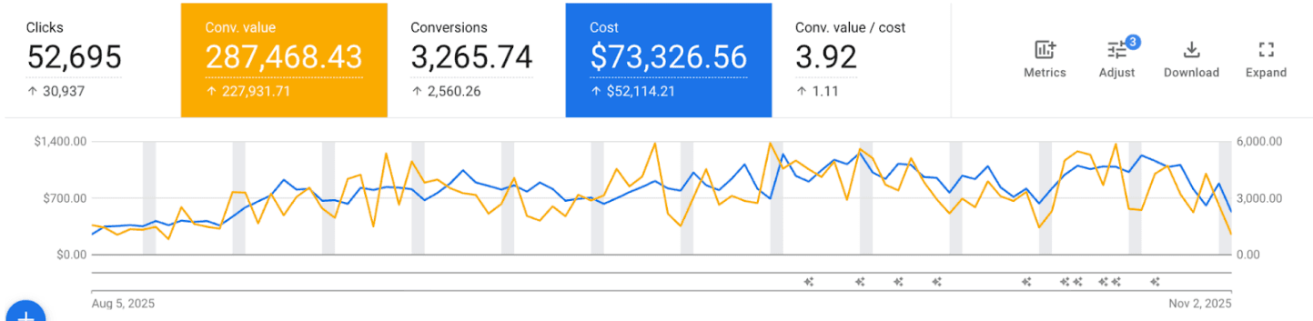 ✅ Conversion value jumped from $59K → $287K (+$228K)